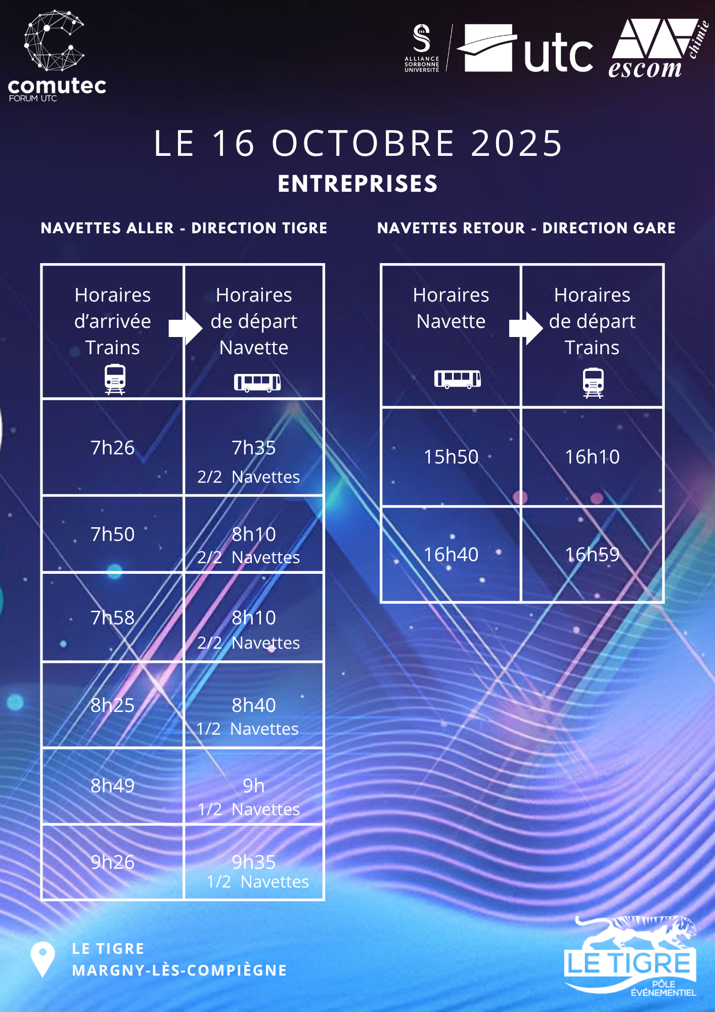 Le Tigre -> Gare de Compiègne : de 15h50 à 16h40 (deux navettes à chaque trajet)